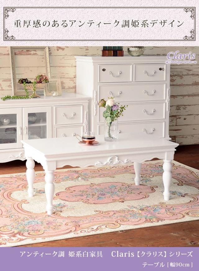 テーブル ローテーブル リビングテーブル おしゃれ センターテーブル アンティーク風 白 ホワイト 姫系 クラシカル クラリス 幅90cm テーブル ローテーブル おしゃれ ホワイト アンティーク風