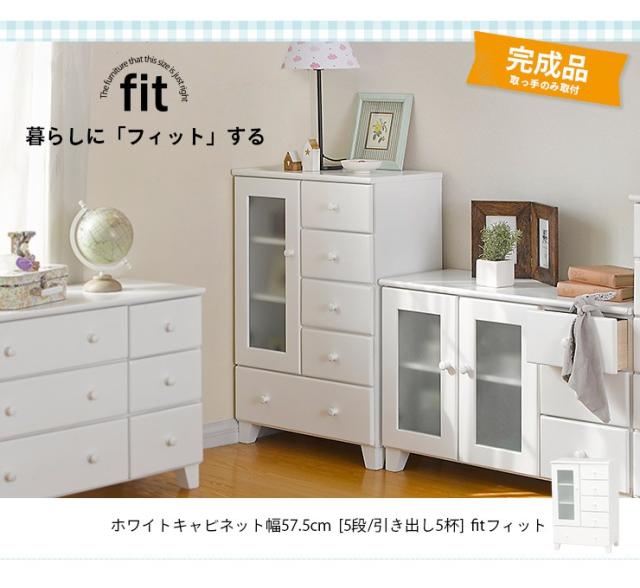 キャビネット ガラス 白 ホワイト 完成品 引出し付き おしゃれ 木製 新生活 一人暮らし 家具 fit フィット 完成品 キャビネット 白 ホワイト リビング 収納棚 白家具 木製
