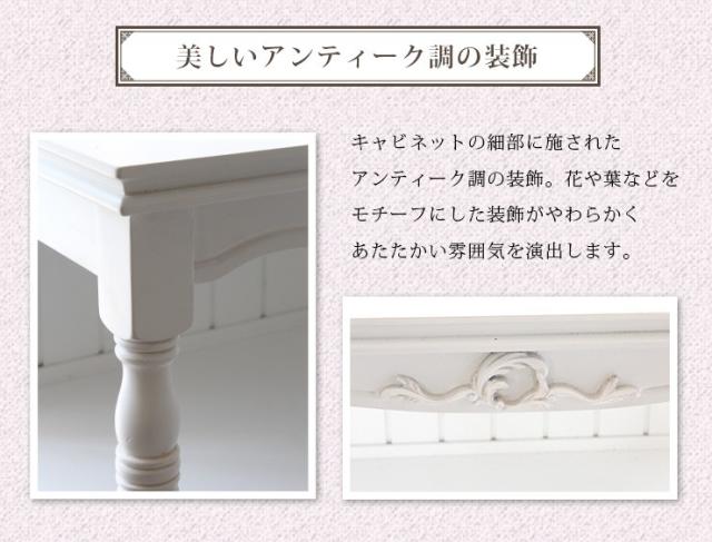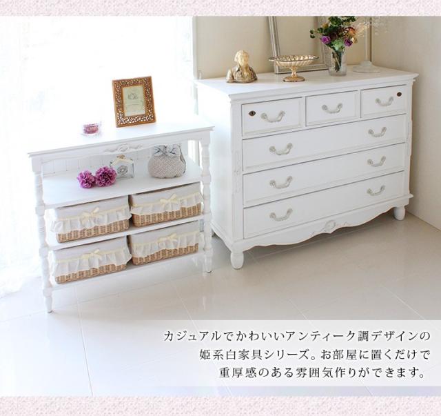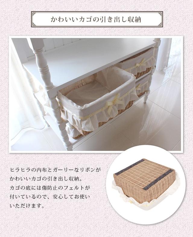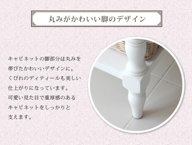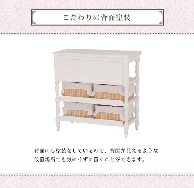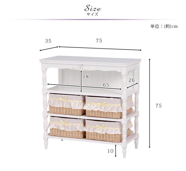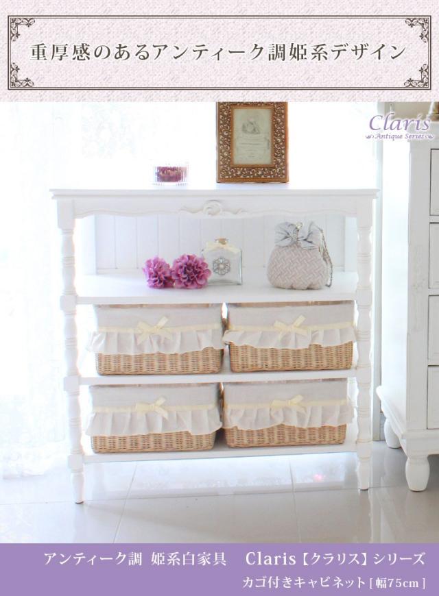 キャビネット 収納 木製 リビング カゴ チェスト ホワイト 姫系 アンティーク風 幅75cm クラリス テレビ台 おしゃれ 完成品 収納 かご付き