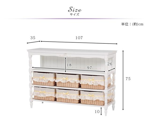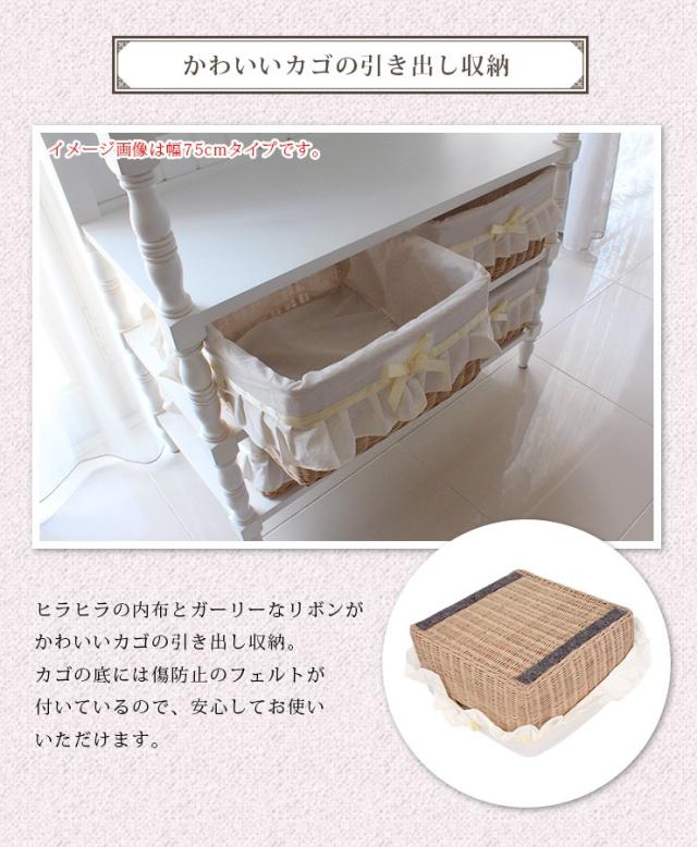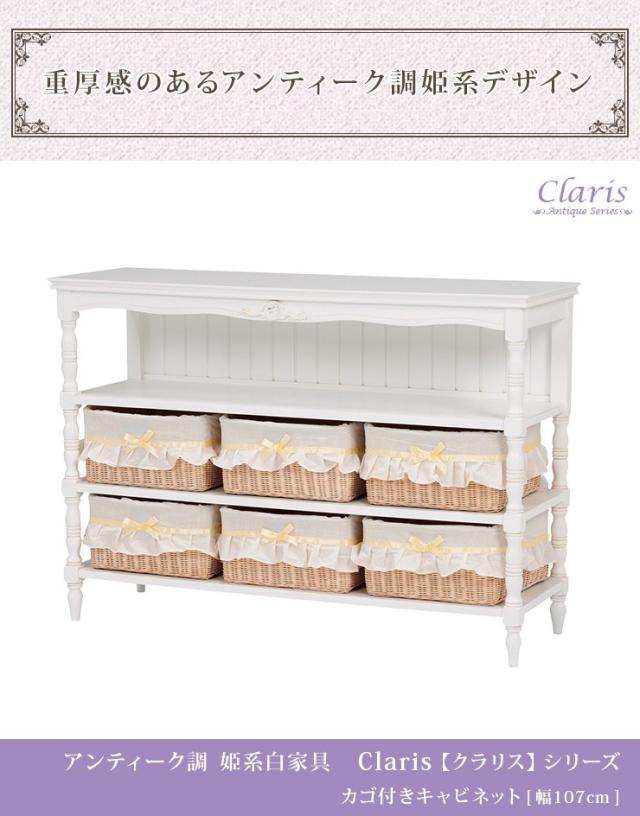 キャビネット 収納 木製 リビング カゴ チェスト ホワイト テレビ台 おしゃれ ローボード 姫系 アンティーク風 幅107cm クラリス テレビ台 おしゃれ 完成品 収納 かご付き