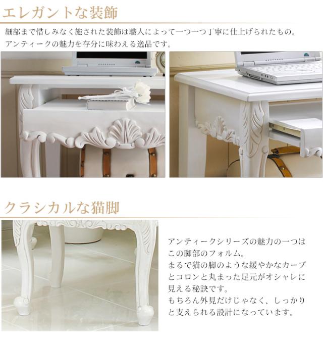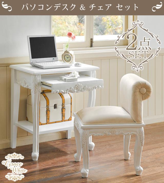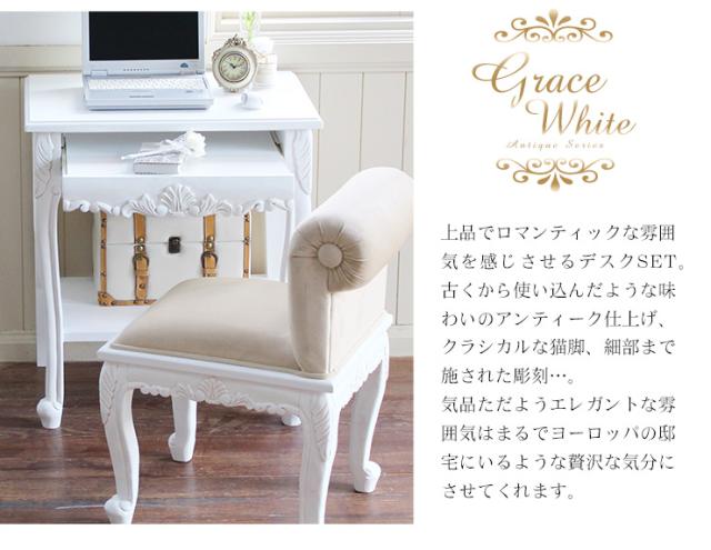 デスク チェアセット おしゃれ 机 椅子 木製 テレワーク 作業台 パソコンデスク PCデスク アンティーク調 猫脚 グレイスホワイト 幅63cm デスク チェア セット パソコンデスク 椅子机 おしゃれ