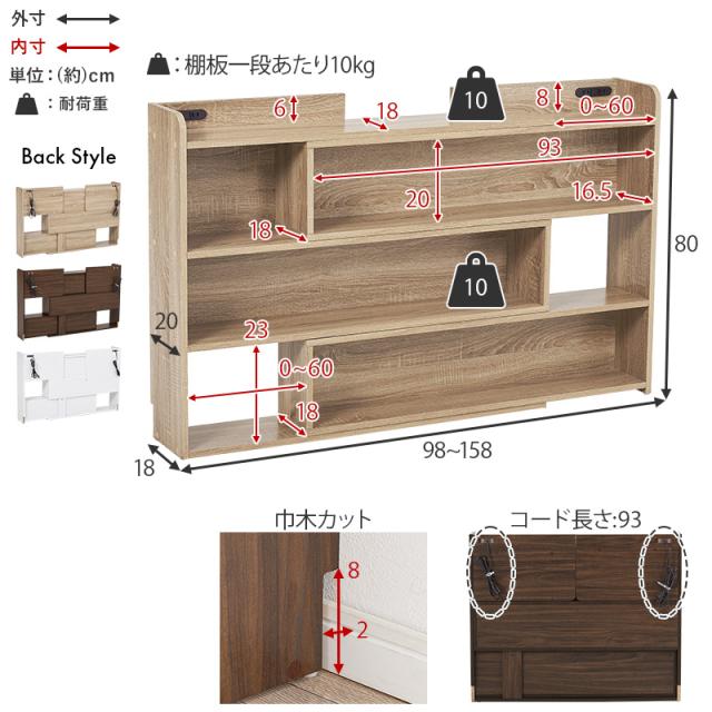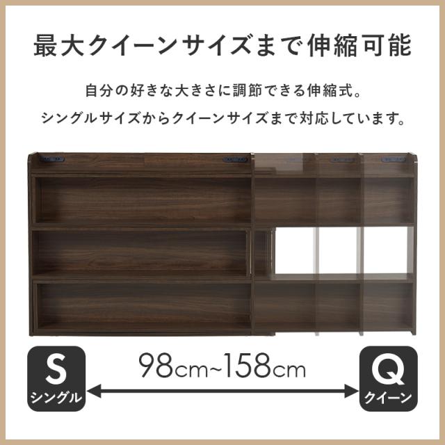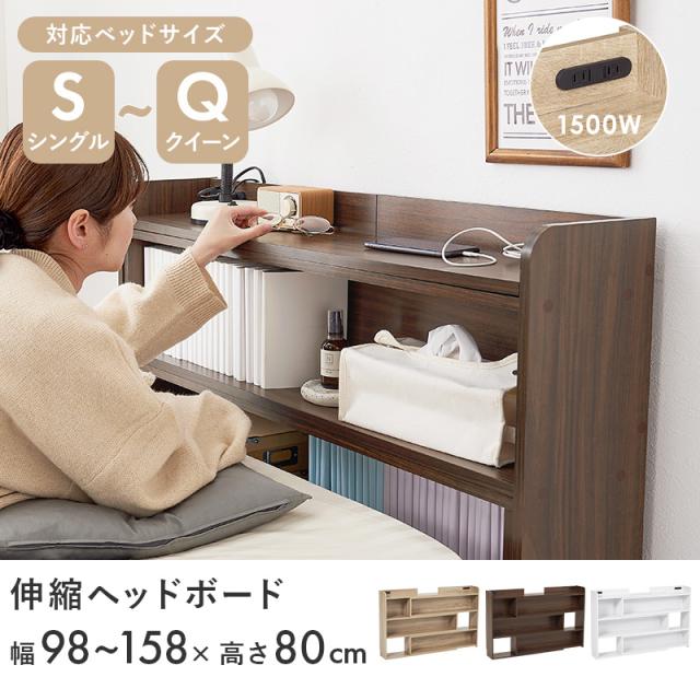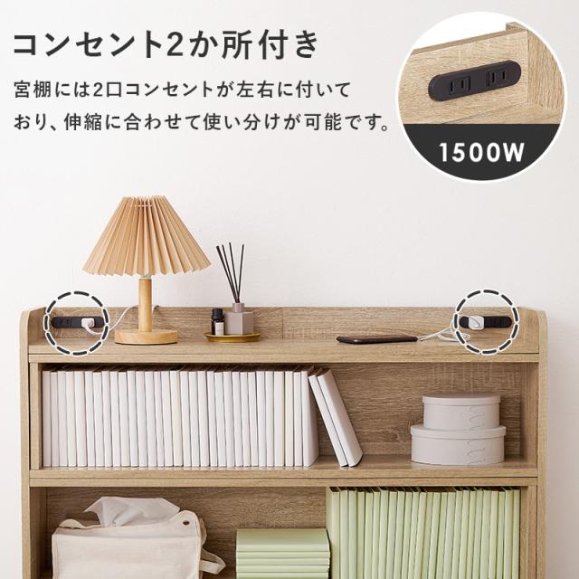 伸縮 ヘッドボード 後付け コンセント シングル セミダブル ダブル クイーン 宮棚 スリム ラック おしゃれ 本棚 枕元 棚 収納 白 木目調 巾木 ナチュラル ホワイト ブラウン ベッドサイド 幅木 収納棚