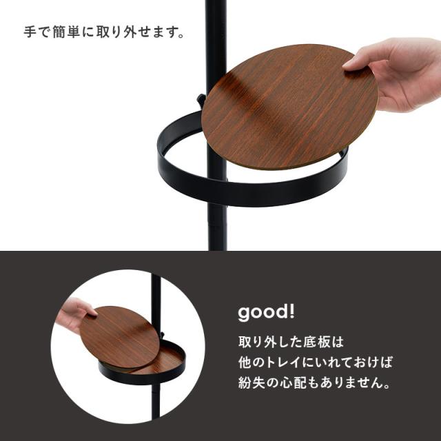 トレイは好きな位置で固定でき、底板を取り外すとハンガーラックとしても使えます。