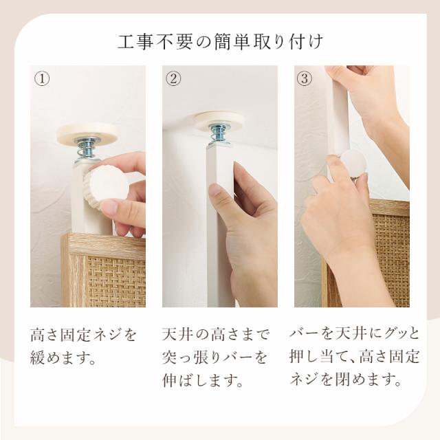 天井と床があれば設置できるので、窓の前など収納を置きにくい場所も活用することができます。