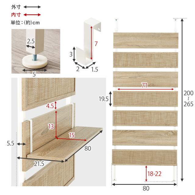 幅80×奥行21.5(棚板を付けた場合)×高さ200?最大265cm