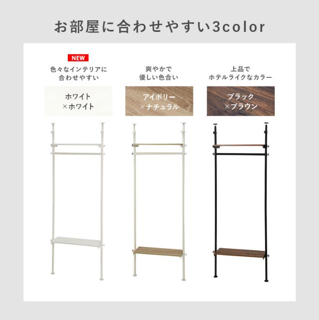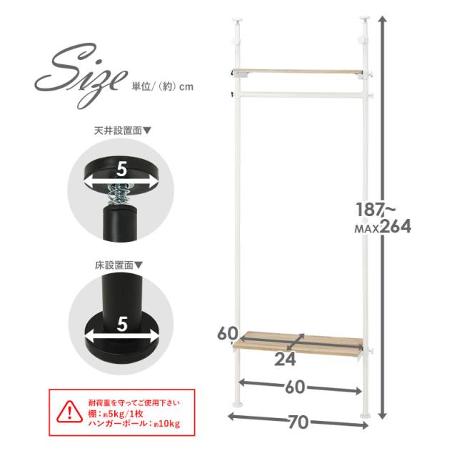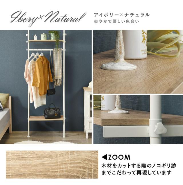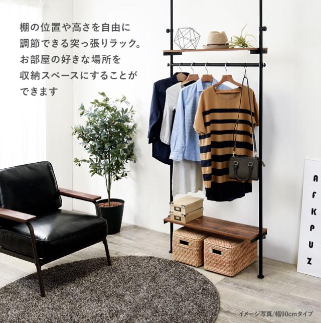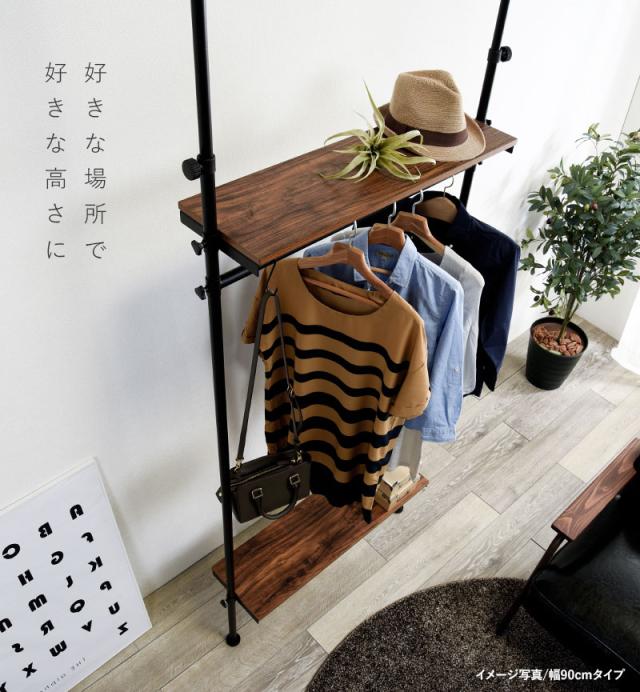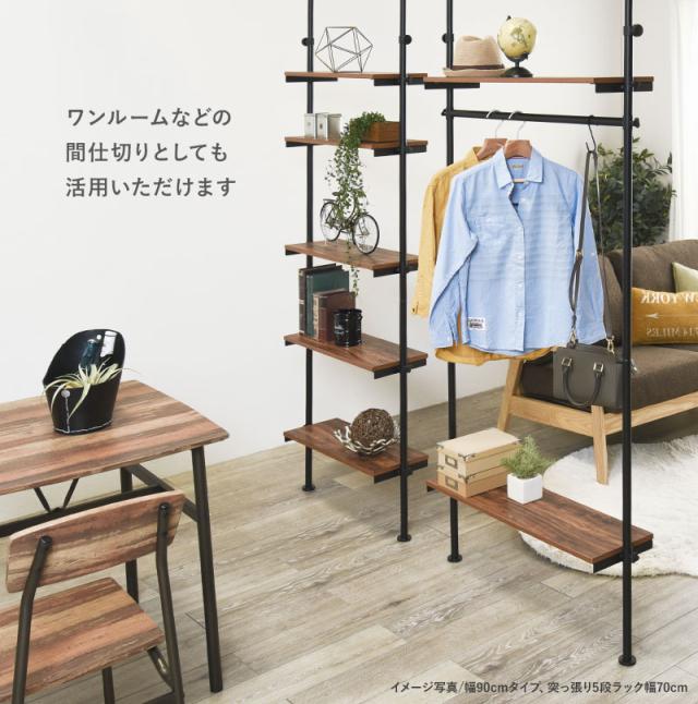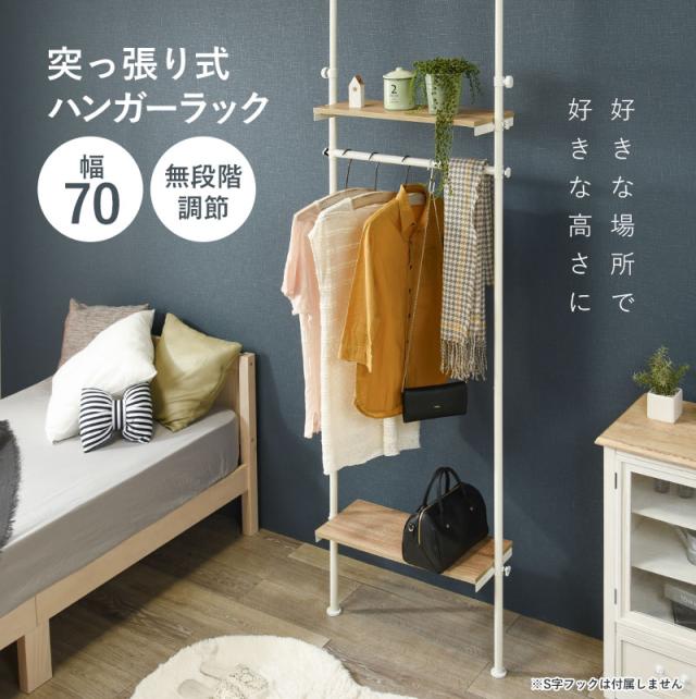つっぱり 突っ張り ハンガーラック ラック 棚 おしゃれ 収納 木目 北欧 調節 段差 スリム 一人暮らし 組立 簡単 シェルフ 間仕切り 70cm デコ つっぱり ハンガーラック 突っ張り ラック 収納 おしゃれ