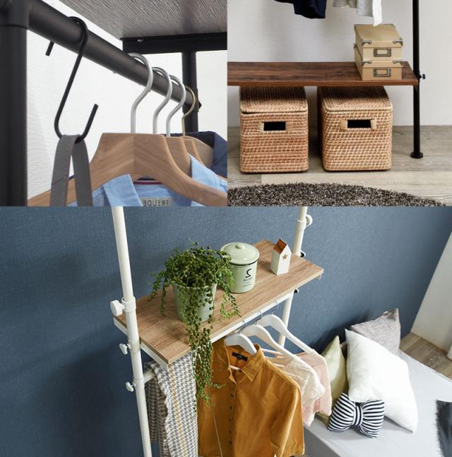 天井と床に突っ張るだけで設置できるハンガーラック。