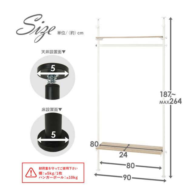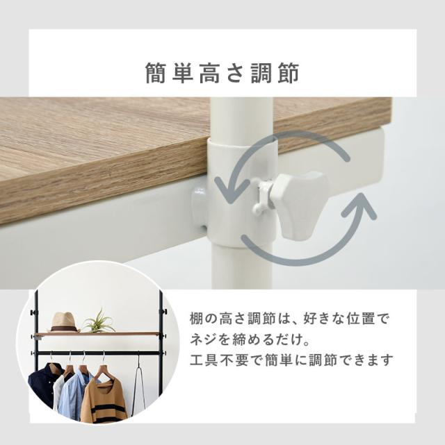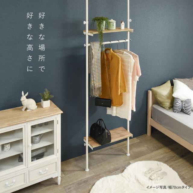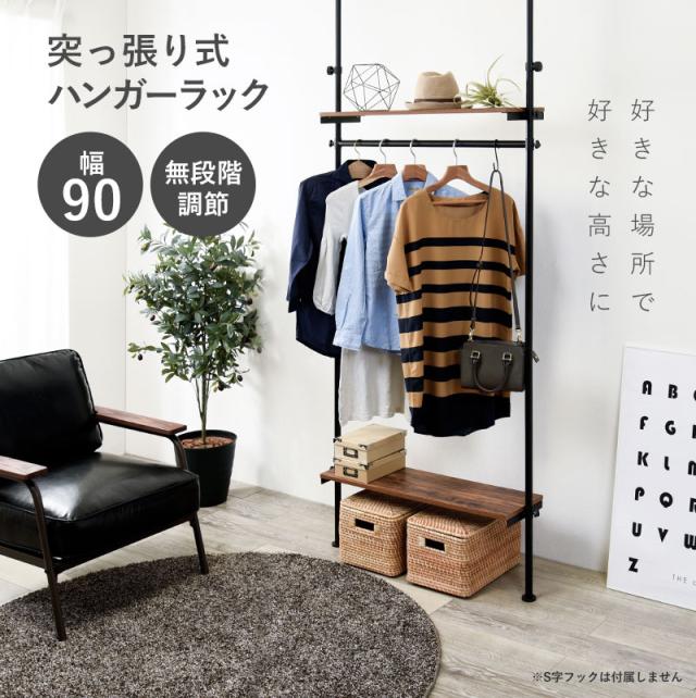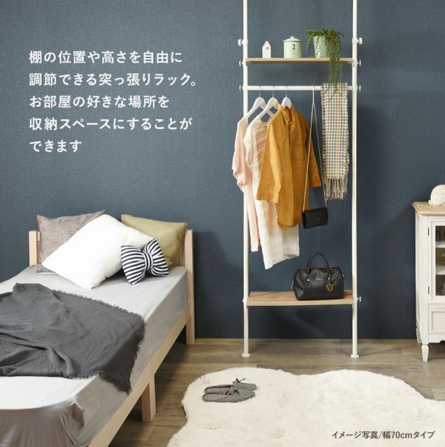 つっぱり 突っ張り ハンガーラック ラック 棚 おしゃれ 収納 木目 北欧 突張り 調節 段差 スリム 一人暮らし 組立 簡単 シェルフ 間仕切り 90cm デコ つっぱり ハンガーラック 突っ張り ラック 収納 おしゃれ
