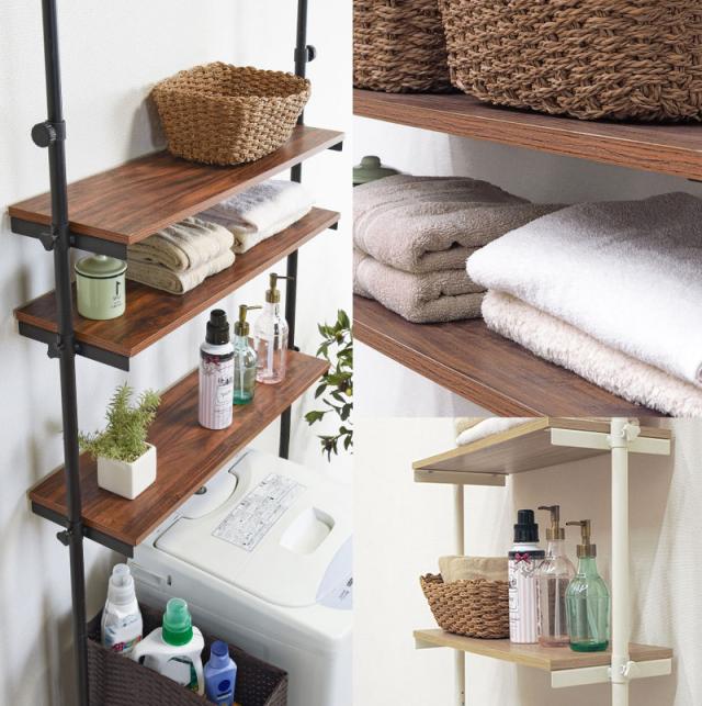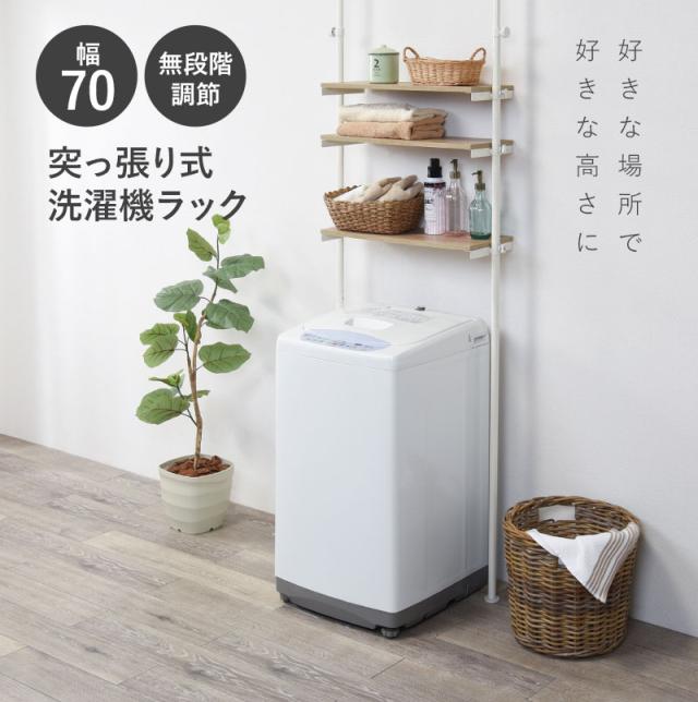 ランドリーラック つっぱり 突っ張り 洗濯機ラック 幅70cm 収納 おしゃれ 木目 北欧 洗濯機 ラック 棚 調節 スリム 一人暮らし 組立 簡単 シェルフ デコ つっぱり ランドリーラック 突っ張り 洗濯機 ラック