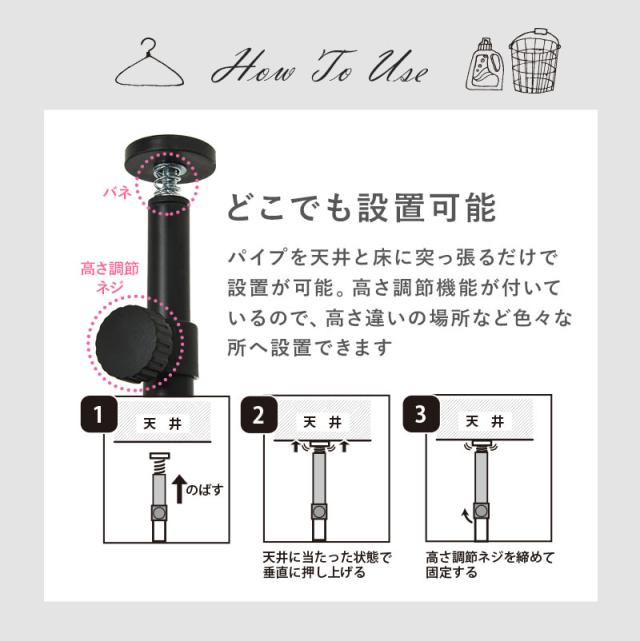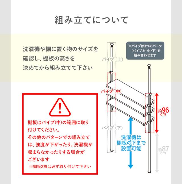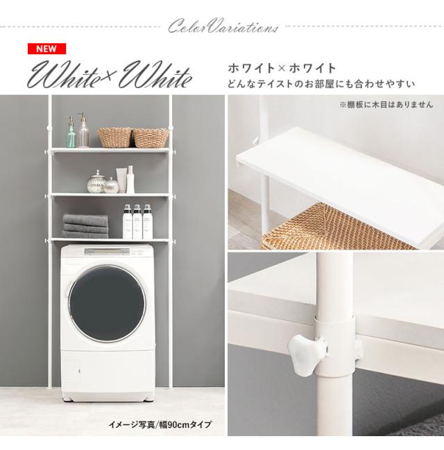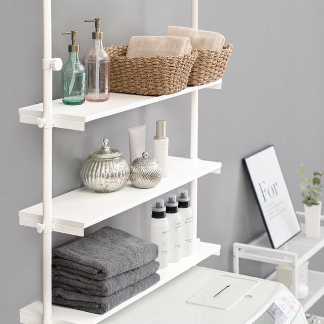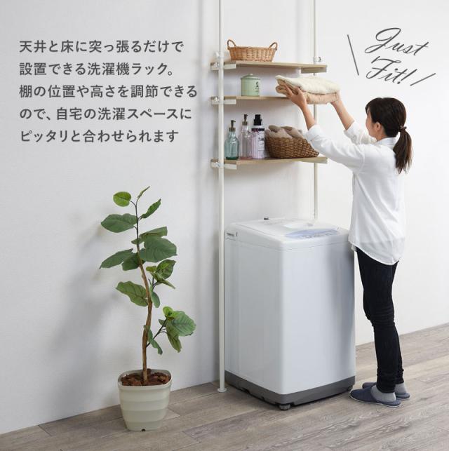 天井と床に突っ張るだけで設置できる洗濯機ラック。