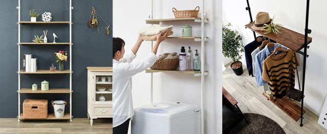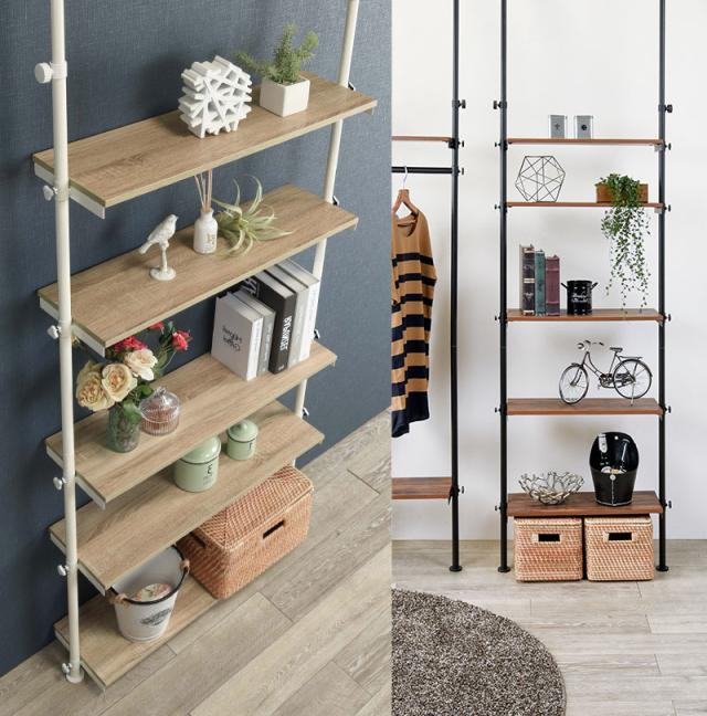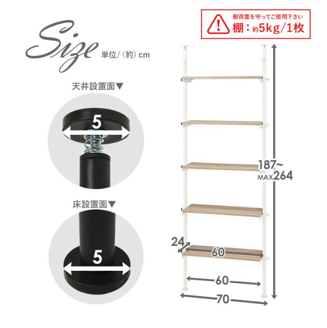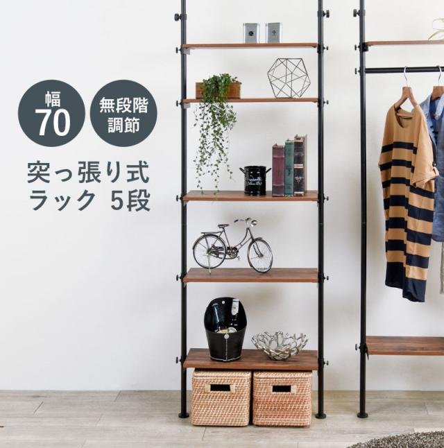 つっぱり 突っ張り ラック 棚 5段 おしゃれ 収納 木目 北欧 突張り 調節 段差 スリム 一人暮らし 組立 簡単 シェルフ 間仕切り 70cm デコ つっぱり ラック 突っ張り 棚 収納 おしゃれ 木目