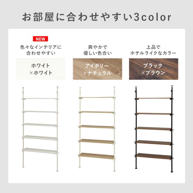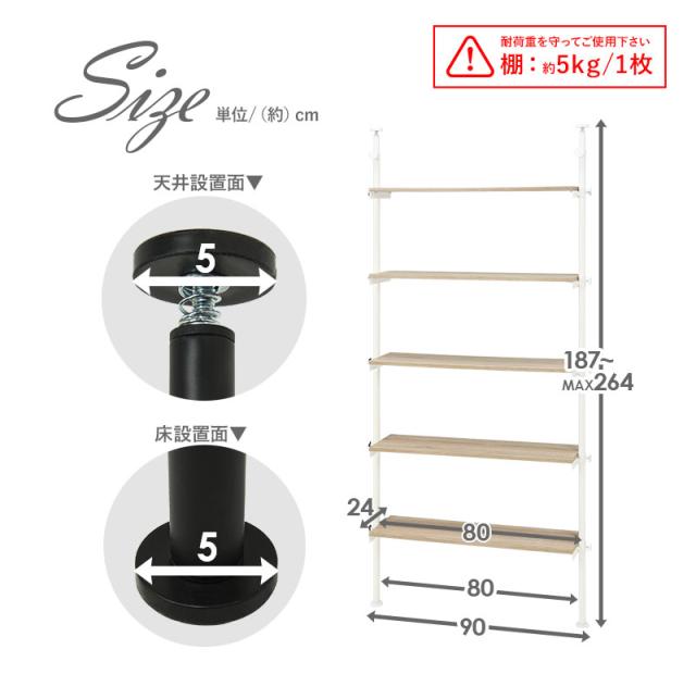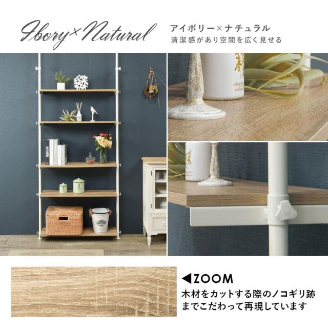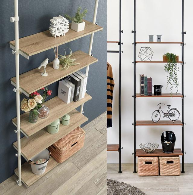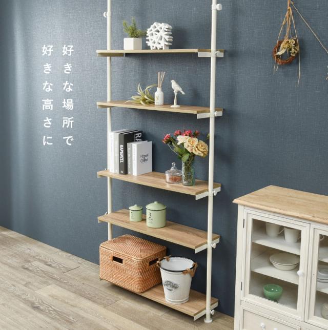 つっぱり 突っ張り ラック 棚 5段 おしゃれ 収納 木目 北欧 突張り 調節 段差 スリム 一人暮らし 組立 簡単 シェルフ 間仕切り 90cm デコ つっぱり ラック 突っ張り 棚 収納 おしゃれ 木目