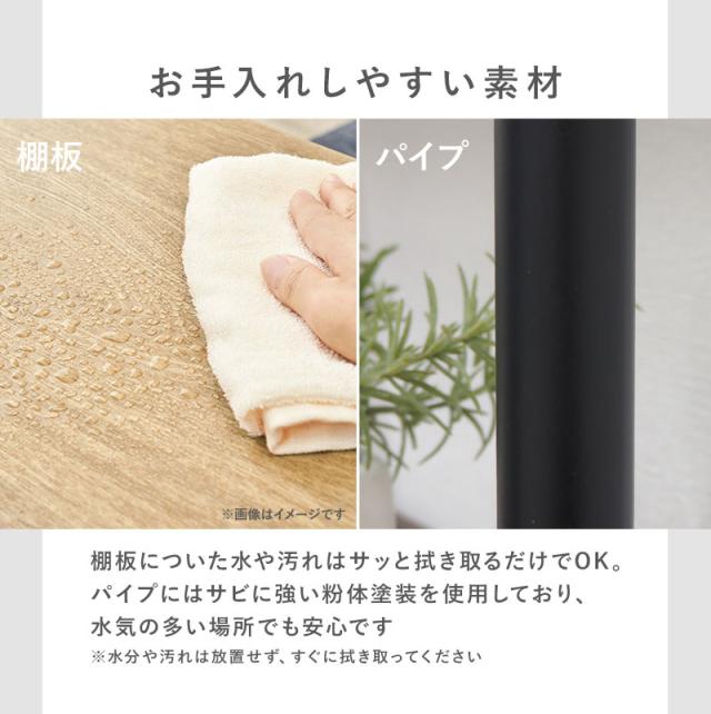 - オシャレで組み立ても簡単でとても良いです。突っ張るところにバネが付いていて、少しあたったりすると揺れますが、取れたり崩れる様子はなく、安定していると思います。