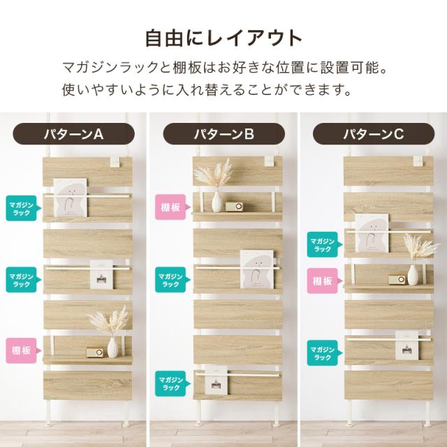突っ張り棚 おしゃれ 突っ張りラック スリム 突っ張り棒 棚 マガジンラック 壁掛け ラック 壁面収納 突っ張り ウォールラック つっぱり ハングマガジン 本棚 収納 伸縮 間仕切り ウォールシェルフ 幅60 推し活 本