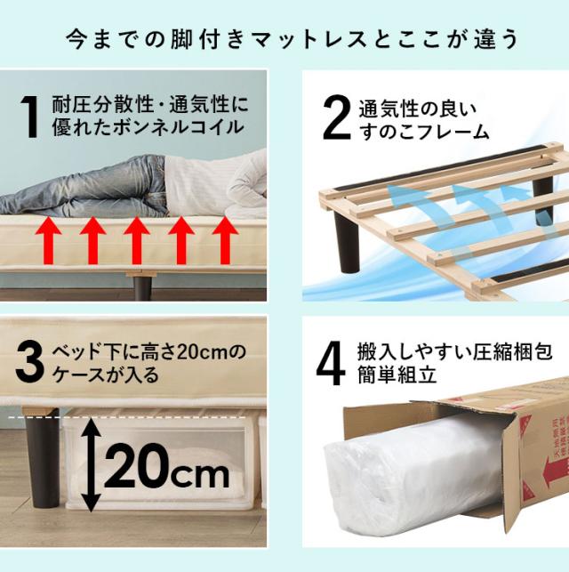 マットレス ベッドフレーム 脚付きマットレス ベッド 脚付き マットレス付き マットレスセット ベッドシングル ボンネルコイル おしゃれ すのこベッド シングルベッド ベッド 脚付きマットレス すのこ 圧縮