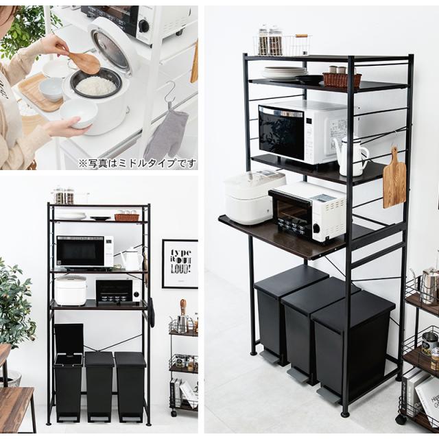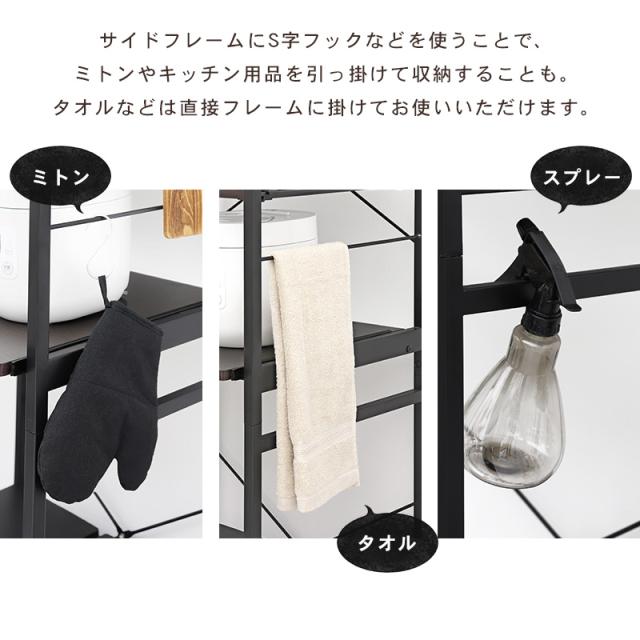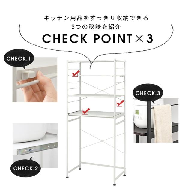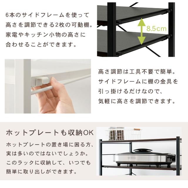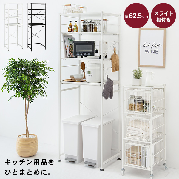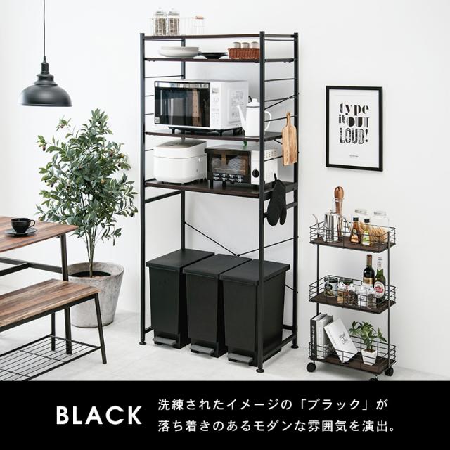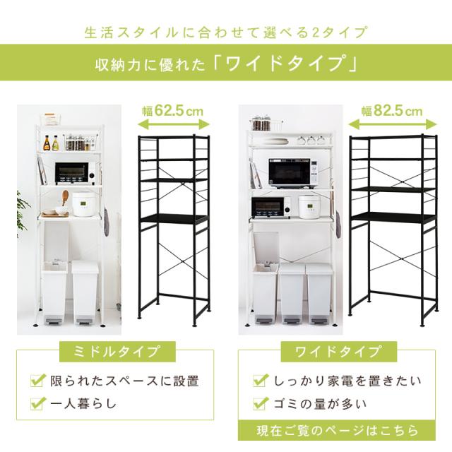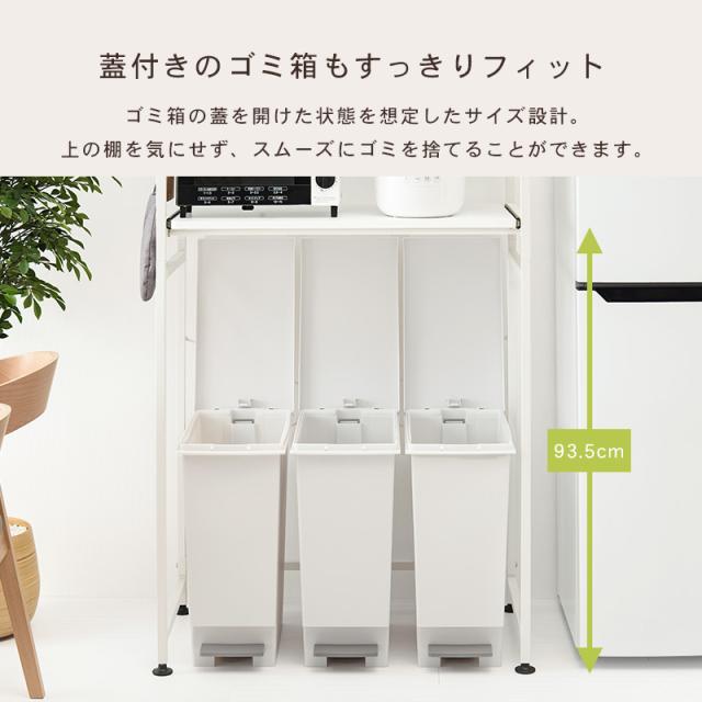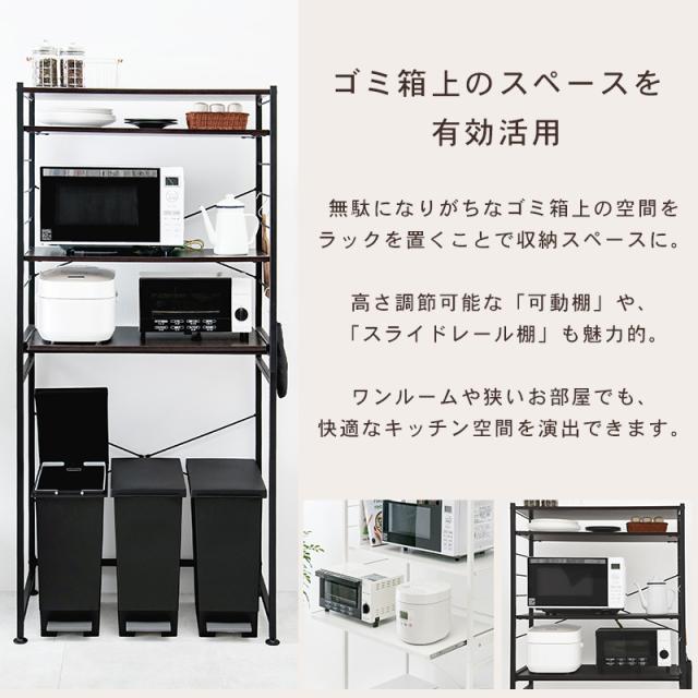 キッチンラック ゴミ箱 キッチン スリム ラック 棚 収納 電子レンジ台 スリム 収納棚 白 黒 幅82.5cm(モノクロ) キッチンラック おしゃれ 高さ調節 収納 ラック 棚 白 黒