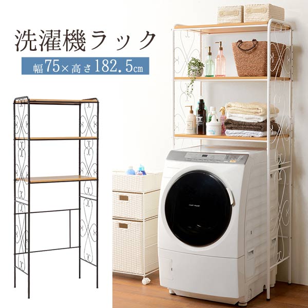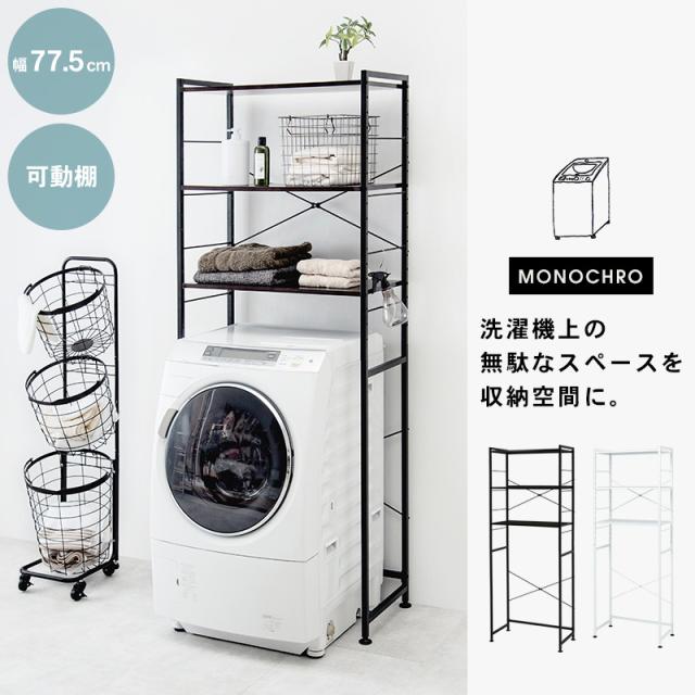 ランドリーラック 洗濯機ラック ランドリー収納 幅77.5cm 洗濯ラック 洗濯機収納 棚 棚板 おしゃれ ブラック ホワイト アイアン モノクロ ランドリーラック 洗濯機 ラック おしゃれ 洗濯機ラック