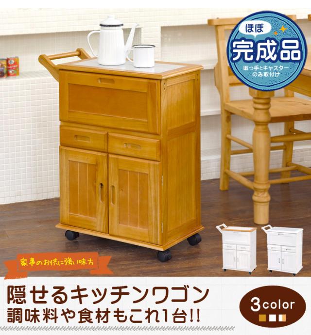 キッチンワゴン キャスター付き おしゃれ キッチン収納 カート ワゴン 木製 作業台 タイル付き フラップ扉 カントリー調 ハンドル付き キッチンワゴン キッチンワゴン ワゴンカウンター ワゴン