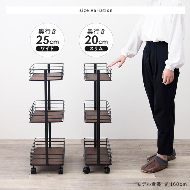 キッチンワゴン キャスター付き スリム 3段 北欧 おしゃれ スチールラック キッチン収納 カート ワゴン シンプル 幅20cm 幅25cm イレブン キャスター付き キッチンワゴン 3段 おしゃれ 隙間収納