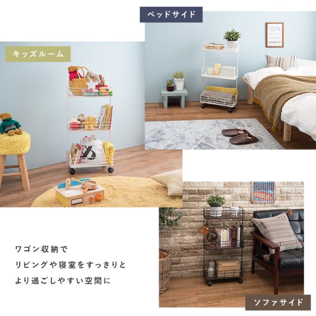 小物を飾ったり備品を収納したり、様々なシーンで使えるオープンワゴン。
