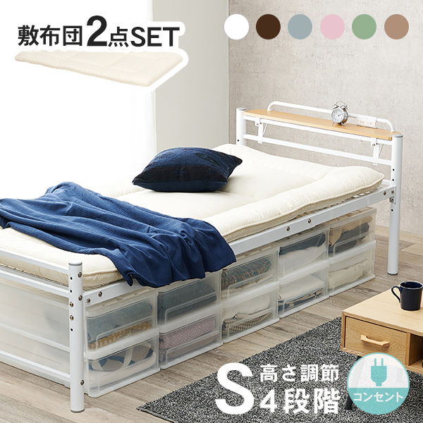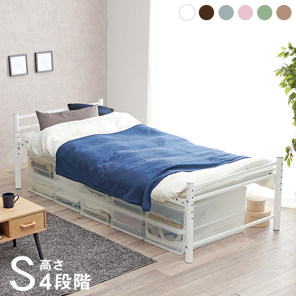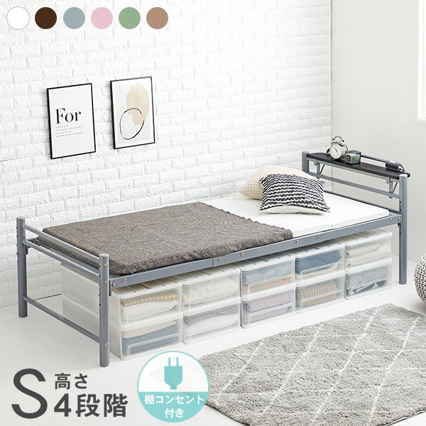 高さ4段階調整ができる宮棚付きパイプミドルベッド「Neo」