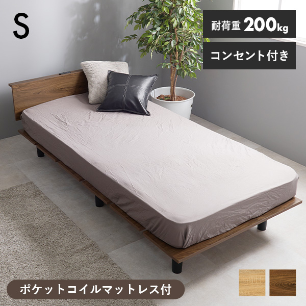 ベッドフレーム ベッド シングル すのこ すのこベッド パネル 木製 頑丈 おしゃれ ベット ベットフレーム シングルベッド 木目調 コンセント 単品 ベッドフレームのみ 脚付き 北欧 ナチュラル パネルベッド
