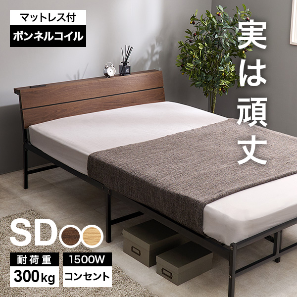 ベッドフレーム セミダブル コンセント ベッド パイプ ベットフレーム ベット フレーム パイプベッド 宮付き 宮棚付きベッド セミダブルベッド セミダブルベット パイプベット 宮棚付きベット 頑丈 耐荷重300kg おしゃれ