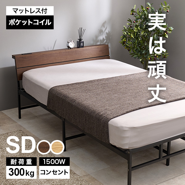 ベッドフレーム セミダブル コンセント ベッド ベットフレーム ベット マットレス付き ベッドセット マットレスセット パイプベッド 宮付き ポケットコイル ベットセット 宮棚 おしゃれ セミダブルベッド セミダブルベット