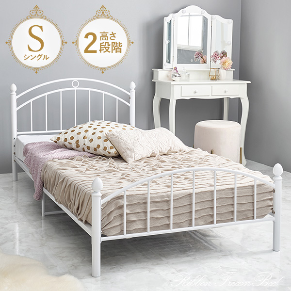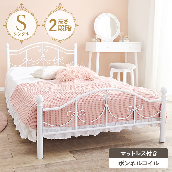 ベッド シングル 可愛い おしゃれ 姫系 高さ調節 パイプベッド ベッドフレーム 収納 白 クラシック エレガント ベッド下収納 リボン 一人暮らし リボンベット 姫系ベット シングルベット アイアンベット ベット