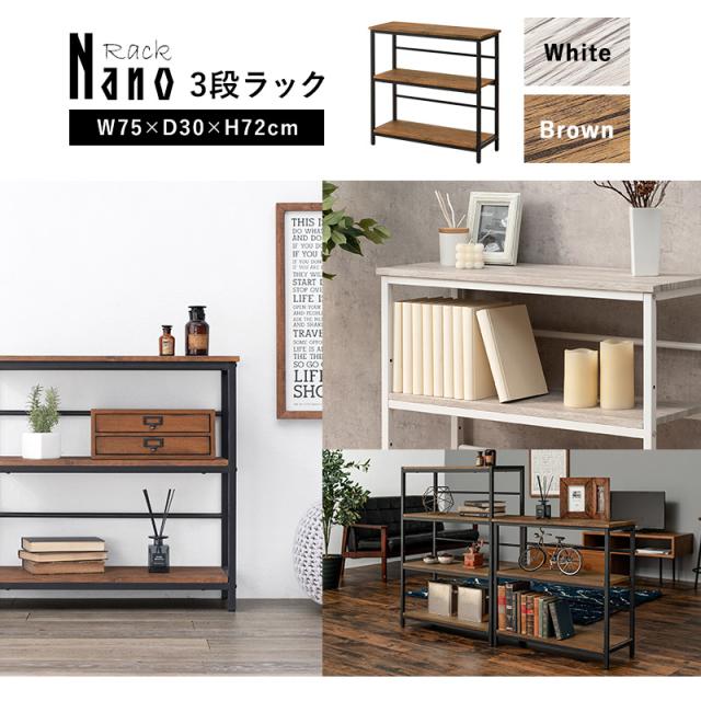 ラック 棚 スチール 3段 棚 おしゃれ 収納 収納棚 スリム リビング オープンラック 収納ラック スチールラック オープンシェルフ 幅75 ナノ 可愛い 男前 衣類収納 子供部屋 ワンルーム 高さ調節 Nano