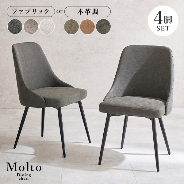 サラッとした肌触りのファブリックの2種類の生地から選べるダイニングチェア「モルト」4脚セット。