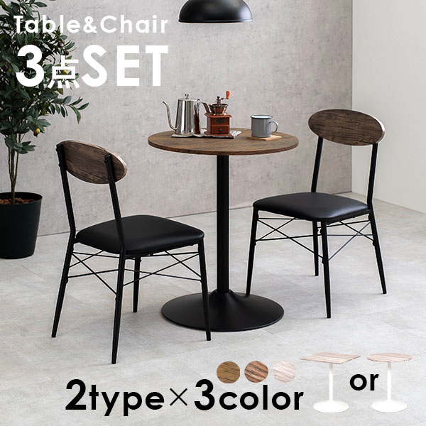 カフェ風テーブルとヴィンテージ風チェアの3点セット。