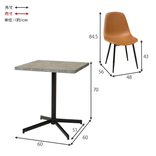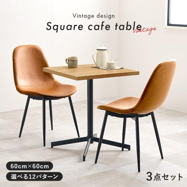 カフェテーブルセット 60cm 四角 カフェ風 ダイニングテーブルセット 2人 テーブル 正方形 おしゃれ 木目 石 レザー風 ヴィンテージ チェア ダイニング ティー 男前 北欧 一人暮らし 二人暮らし 机