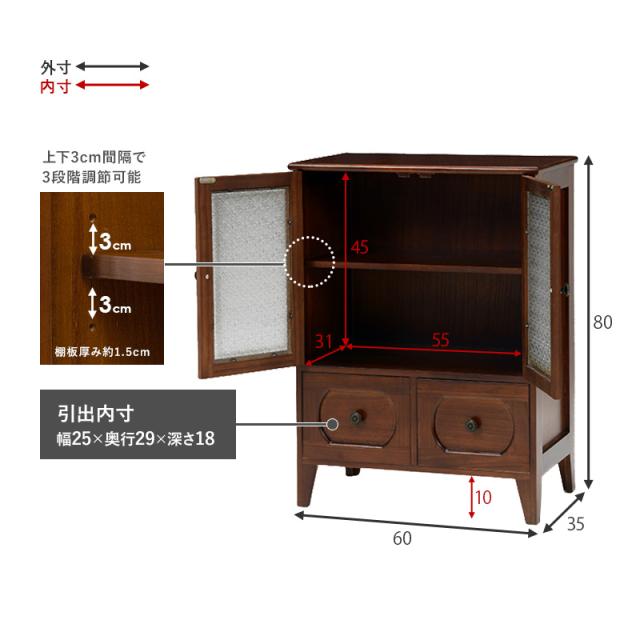 キャビネット 収納 リビング 木製 レトロ おしゃれ 完成品 引出し モダン 60 アンティーク 木製 昭和レトロ 大正ロマン モダン すりガラス 棚 ブルーノ キャビネット 収納 リビング 木製 レトロ おしゃれ 完成品 60