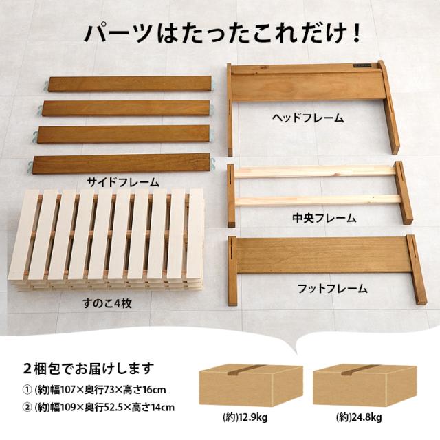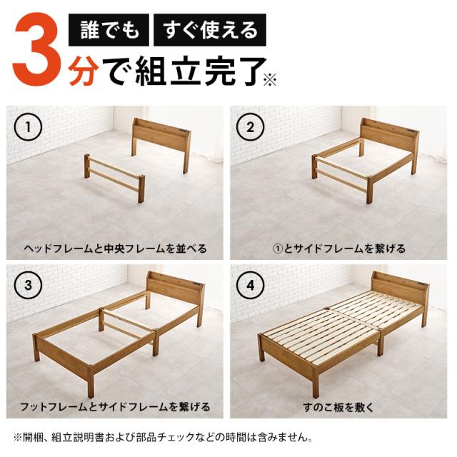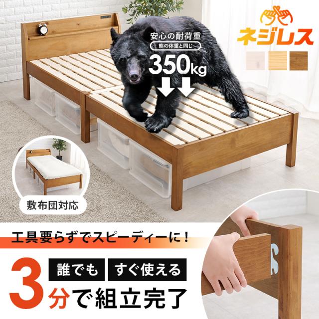 ベッド 組み立て簡単 すのこ 木製ベッド ベッドフレーム シングルベッド 宮棚付き コンセント付き 敷布団対応 ナチュラル 耐荷重350kg 頑丈 NEJILESS ネジレス ベット シングル すのこ 新生活 一人暮らし 木製ベット