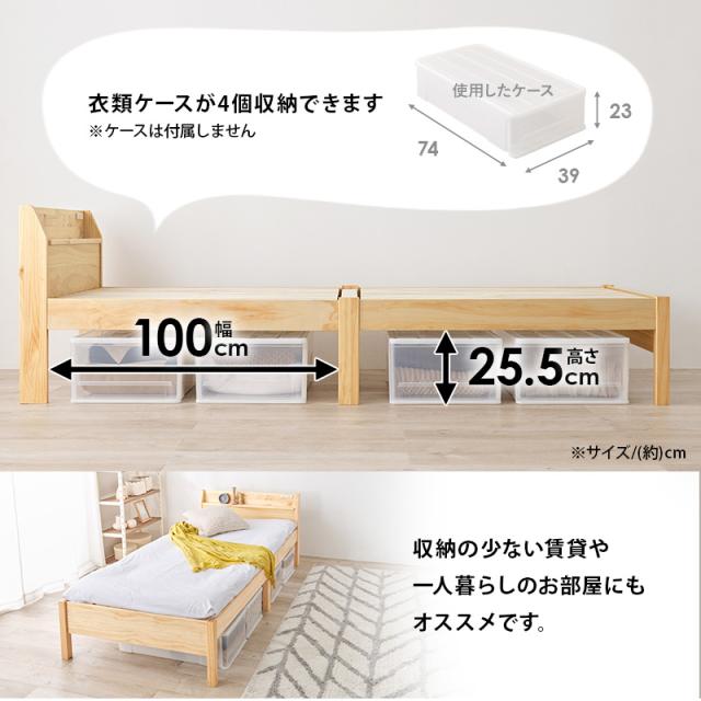 シンプルなデザインながらベッド下収納もできるスペースも確保。