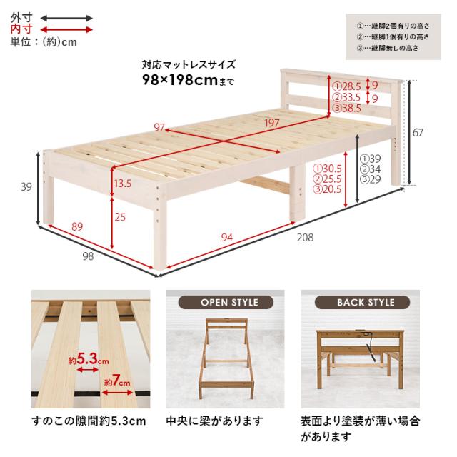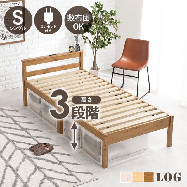 すのこベッド シングル 布団 高さ調整 敷き布団 頑丈 棚付き コンセント 北欧 おしゃれ 収納 敷布団 宮棚 高さ 調整 白 天然木 木製 シンプル 韓国 LOG ログ すのこベッド シングル 布団 高さ調整 頑丈 LOG ログ