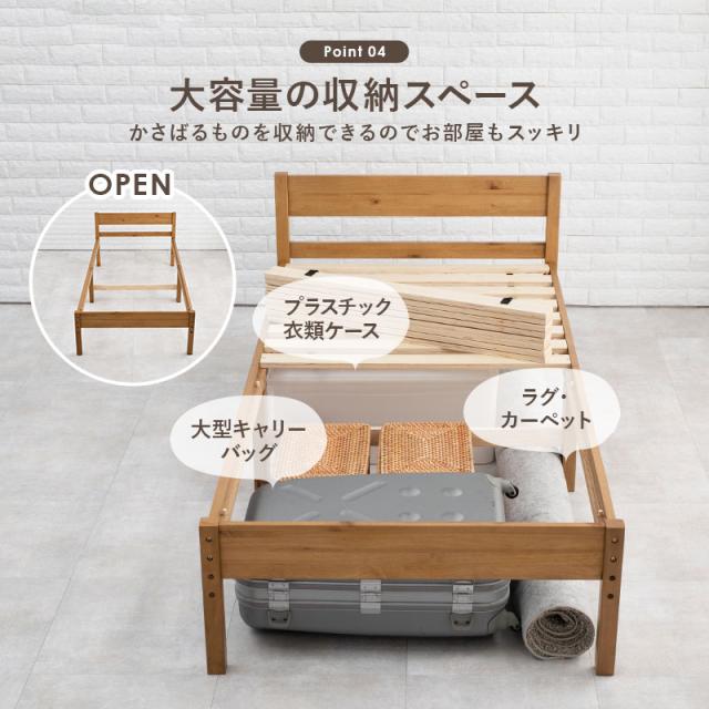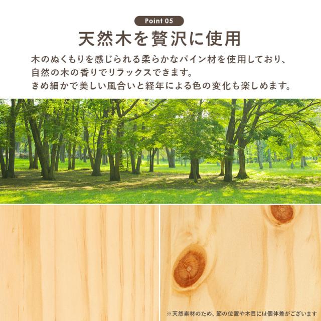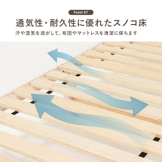 天然木パイン材を贅沢に使用したすのこベッド。シンプルながら機能性が高く、耐荷重200kgと頑丈なので、子供から大人まで安心して使えます。