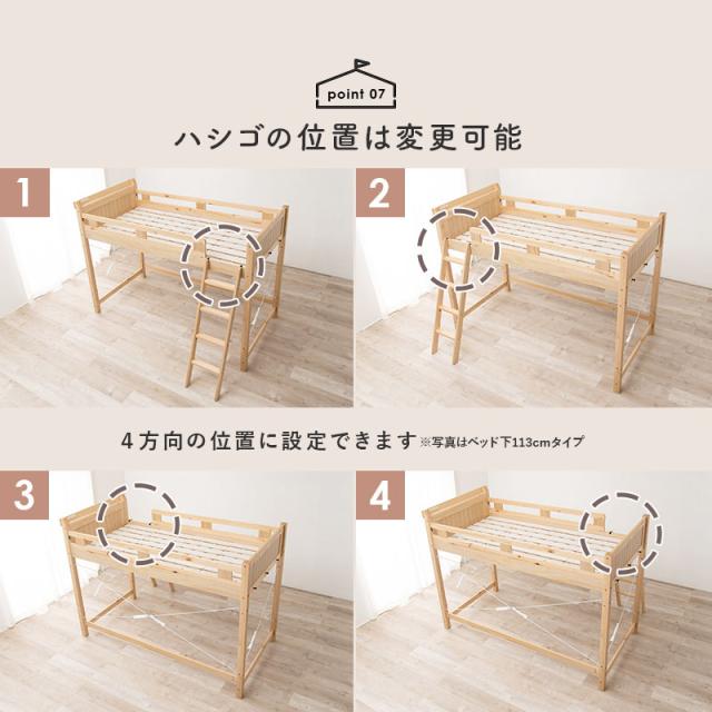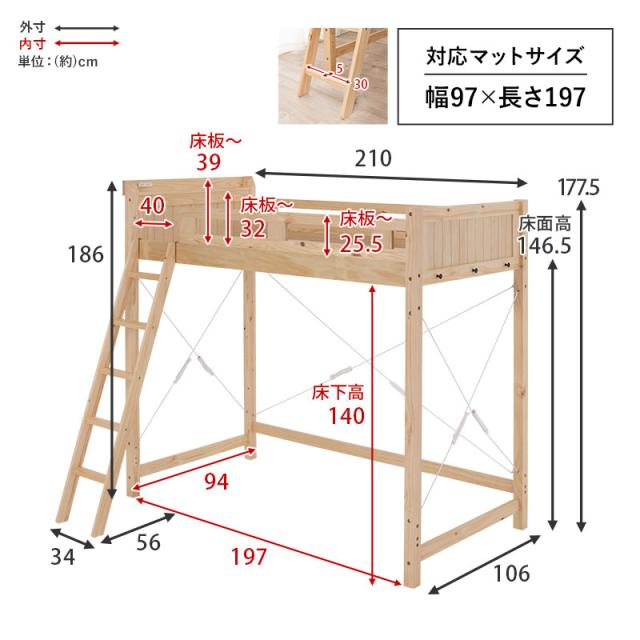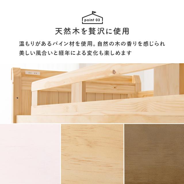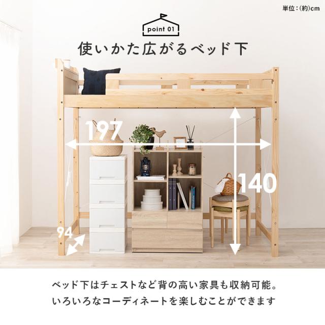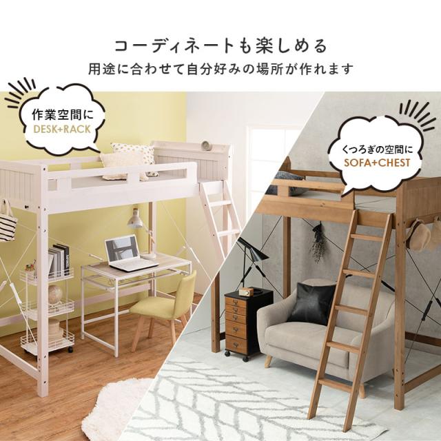 天然木パイン材を贅沢に使用した、おしゃれな北欧風木製ロフトベッド。