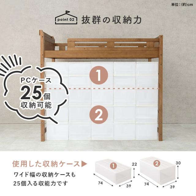 子供部屋はもちろん、一人暮らしやワンルームなどの狭い部屋で大人用にもお使いいただけるサイズです。耐荷重350kgの頑丈タイプなので大人でも安心!