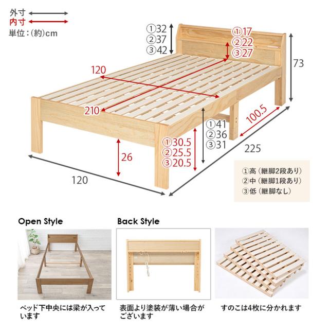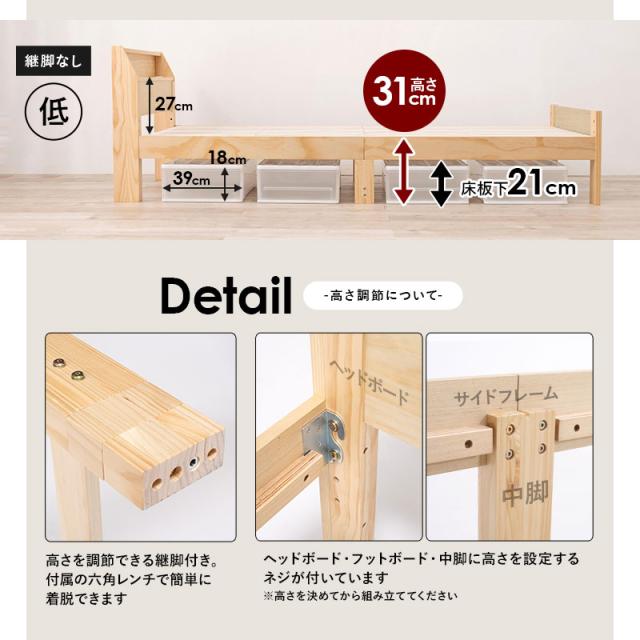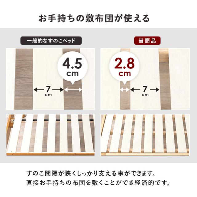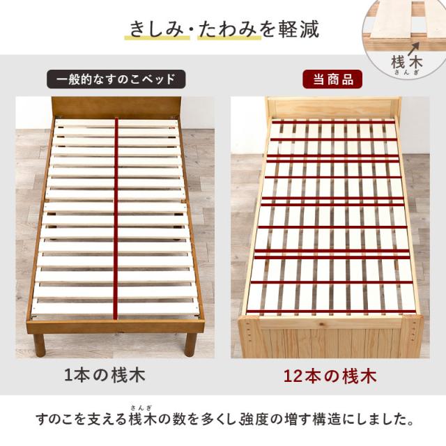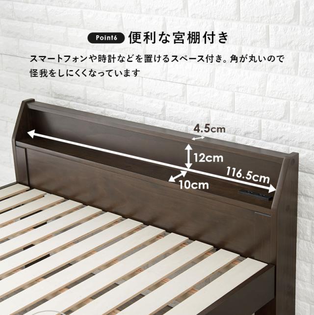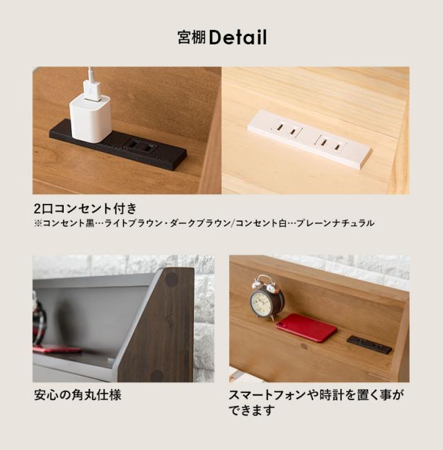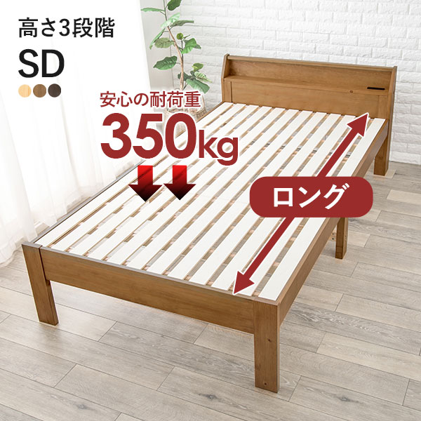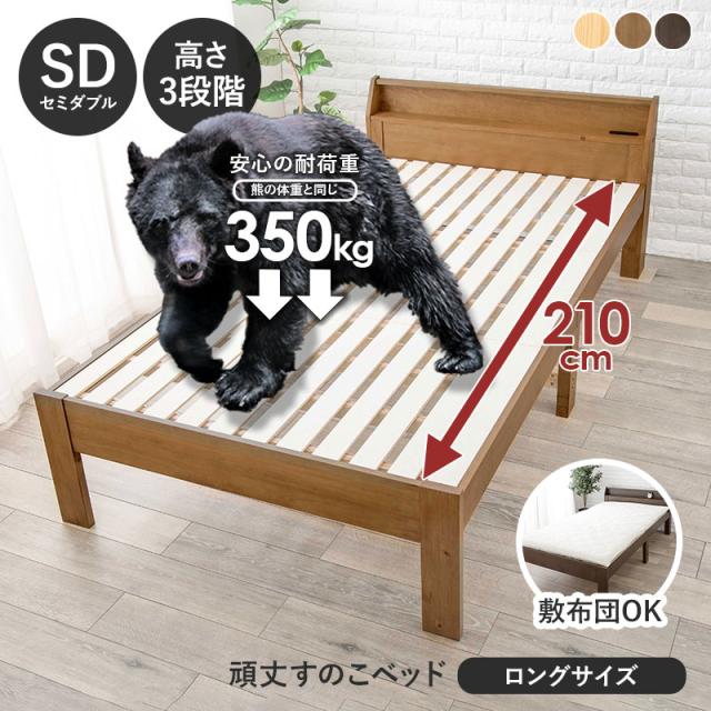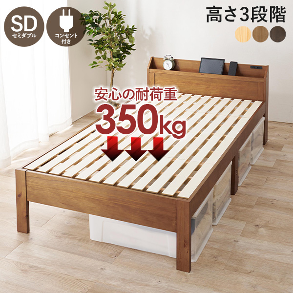 ベッド ベッドフレーム セミダブル 収納 すのこ 木製 コンセント すのこベッド 宮付き 布団 高さ調整 敷き布団 高さ調節 頑丈 北欧 シンプル