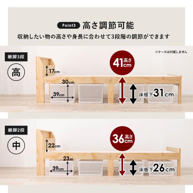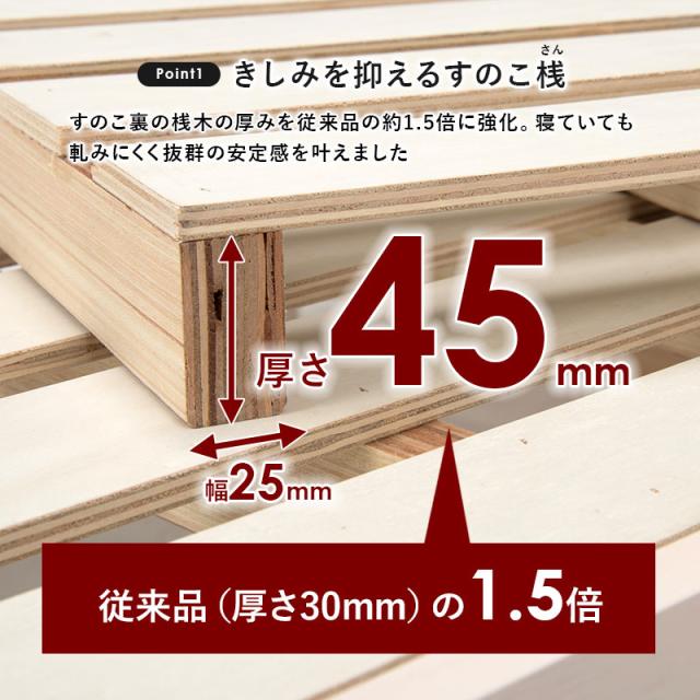 高さが3段階調節できる、耐荷重350kgの頑丈すのこベッド。