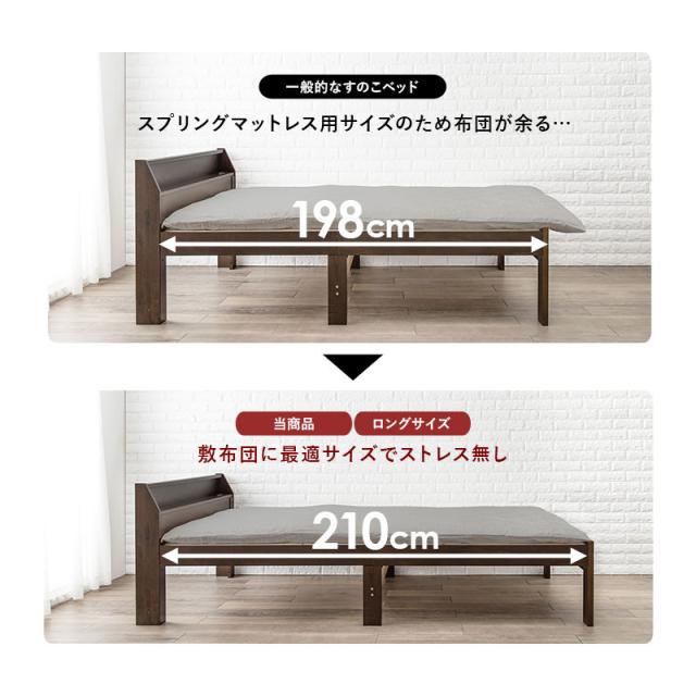 奥行き225cmと普通のセミダブルベッドよりロングサイズ設計のため、お手持ちの布団と合わせて使用いただけます。マットレスは購入不要!