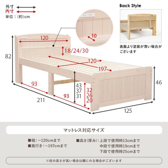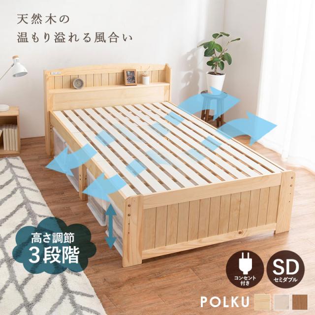すのこベッド すのこベッドセミダブル ベッドフレーム ベッドセミダブル ベッドフレームシングル 布団 コンセント 3段階 木製 収納 おしゃれ 北欧 ポルク すのこベッド セミダブル 布団 コンセント 宮付き 3段階
