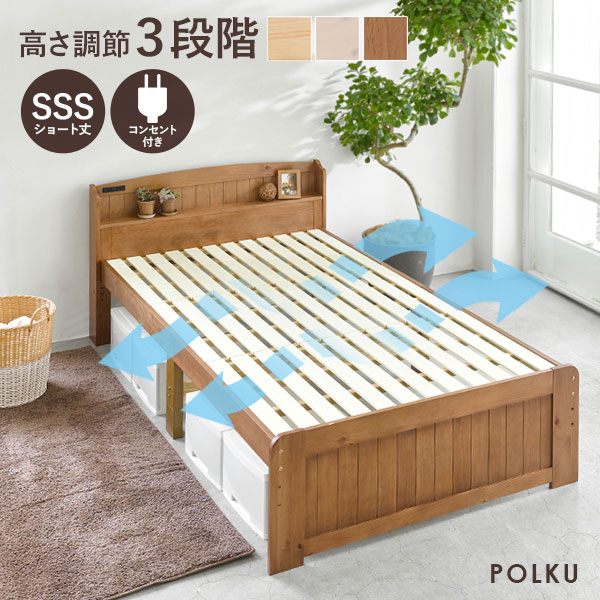 ベッド マットレス付き 小さい ショート丈 マットレスセット ショートサイズ シングル 子供 収納 すのこベッド コンセント 宮付き 白 3段階 高さ調節 ポルク ベッド 小さい ショート丈 ショートサイズ 収納 POLKU