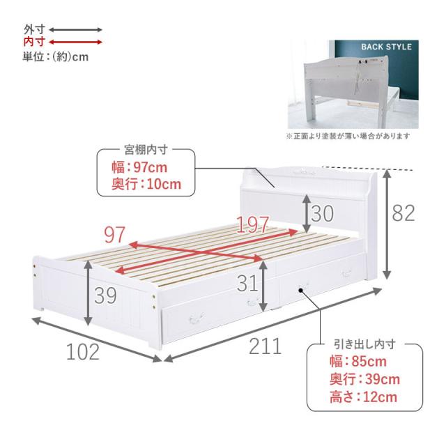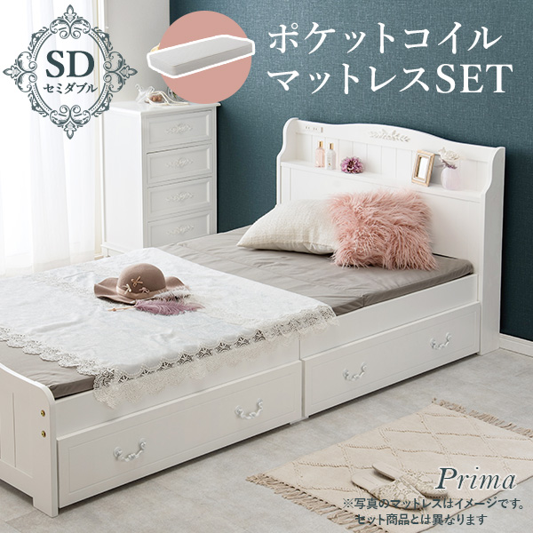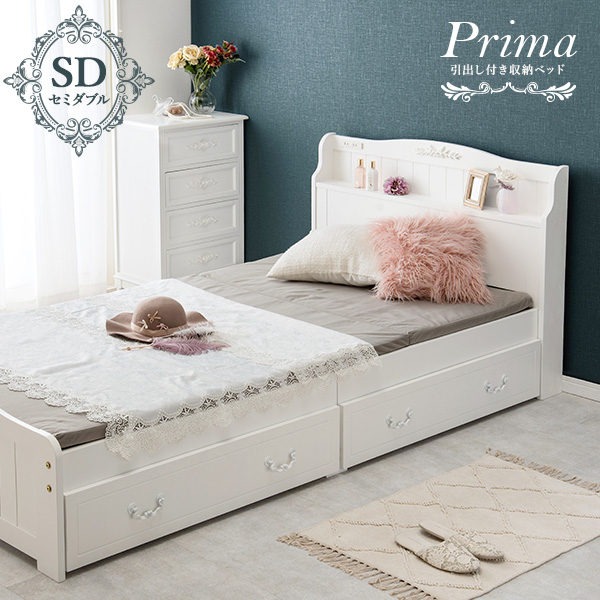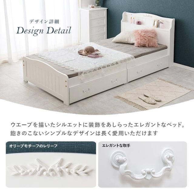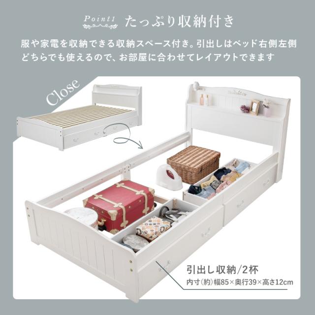 ベッド シングル 可愛い かわいい 白 収納 引出し 引き出し 姫系 木製 すのこ 棚 コンセント付き 布団 ふとん 敷き布団 プリマ ベッド シングル 可愛い 収納 白 引出し 姫系 すのこ