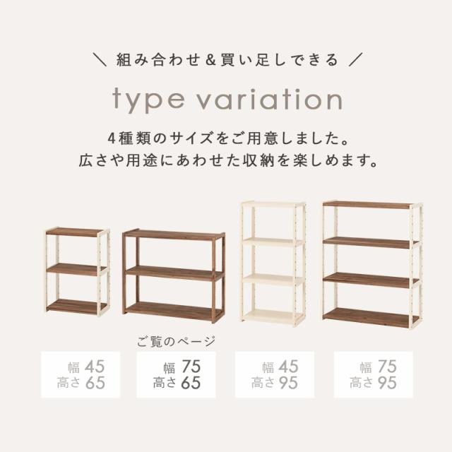 幅は75cmと45cmの2種類、高さは65cmと95cmの全4種類あるので、シリーズで組み合わせてのご使用もおすすめ。