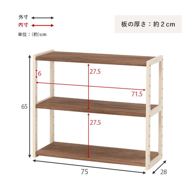ラック 棚 木製 おしゃれ 収納 3段 幅75 北欧 奥行き スリム 高さ65 シンプル シェルフ棚 シェルフラック 天然木 高さ 調整 可動 ディスプレイ メモリー ラック 棚 木製 おしゃれ 収納 3段 幅75 北欧 65