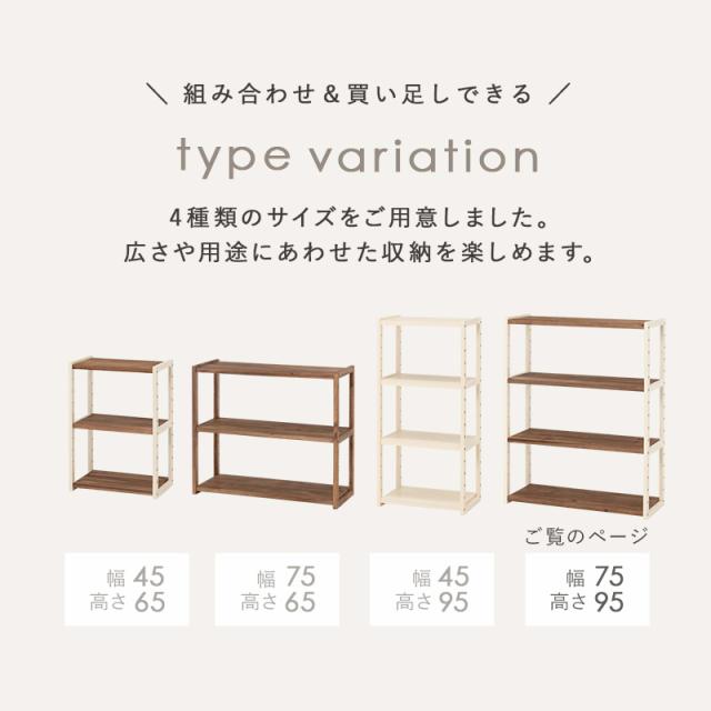 幅は75cmと45cmの2種類、高さは65cmと95cmの全4種類あるので、シリーズで組み合わせてのご使用もおすすめ。