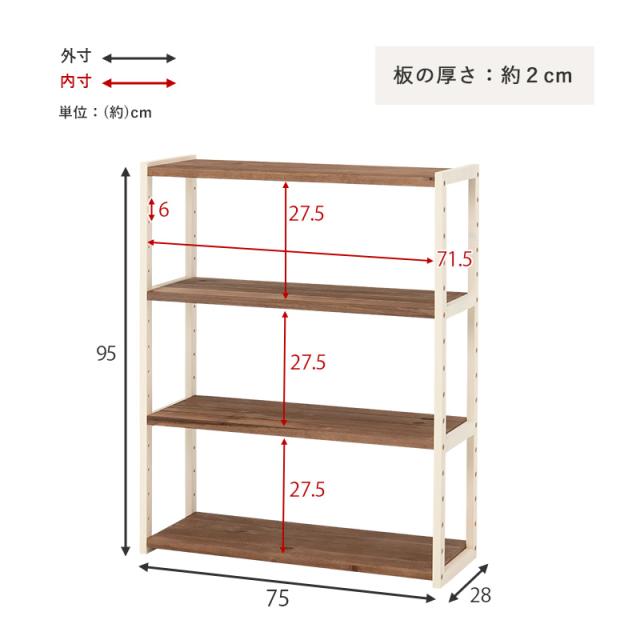 ラック 棚 木製 おしゃれ 収納 4段 幅75 北欧 奥行き スリム 高さ95 シンプル シェルフ棚 シェルフラック 天然木 高さ 調整 可動 ディスプレイ メモリー ラック 棚 木製 おしゃれ 収納 4段 幅75 北欧 95